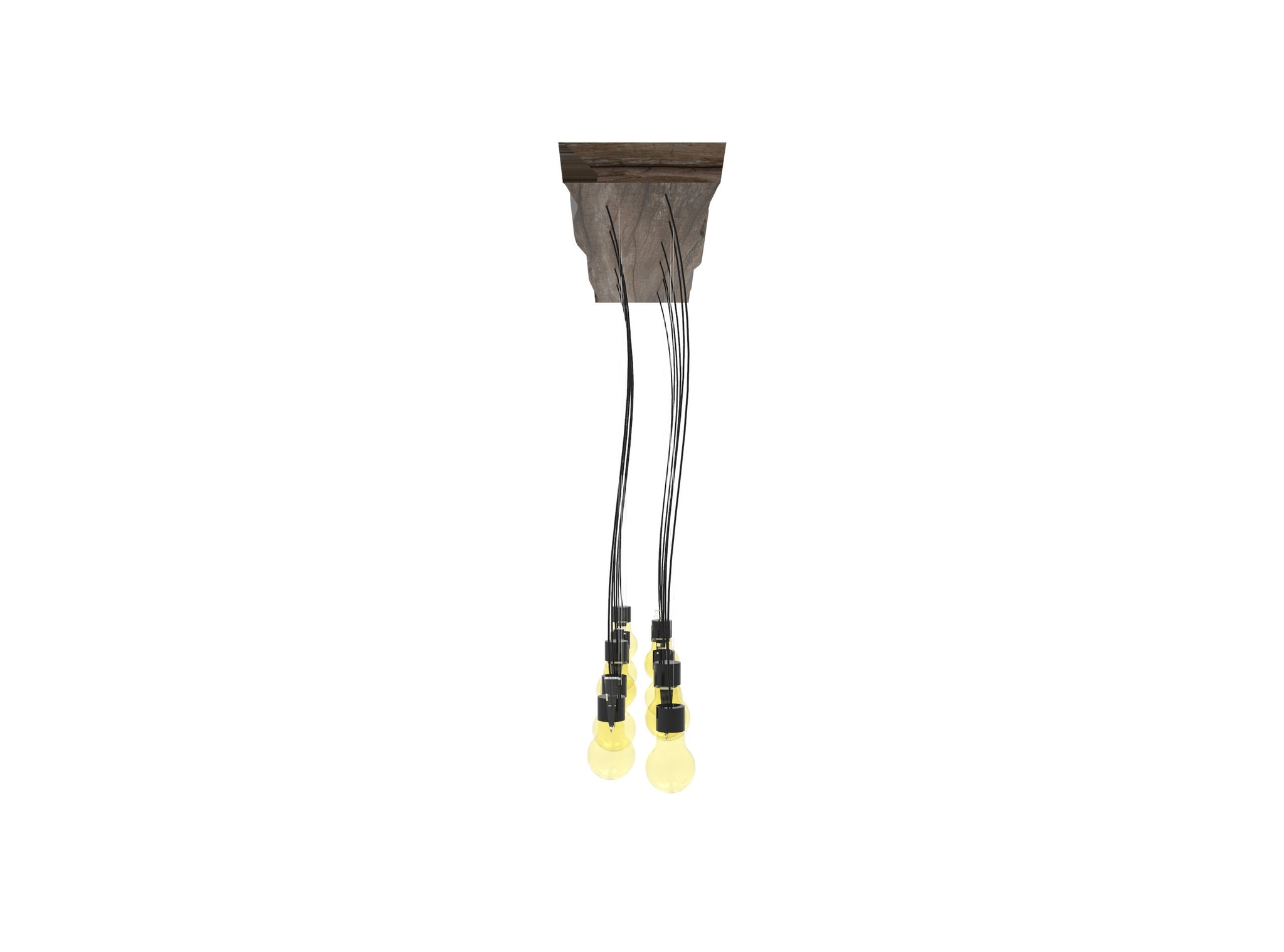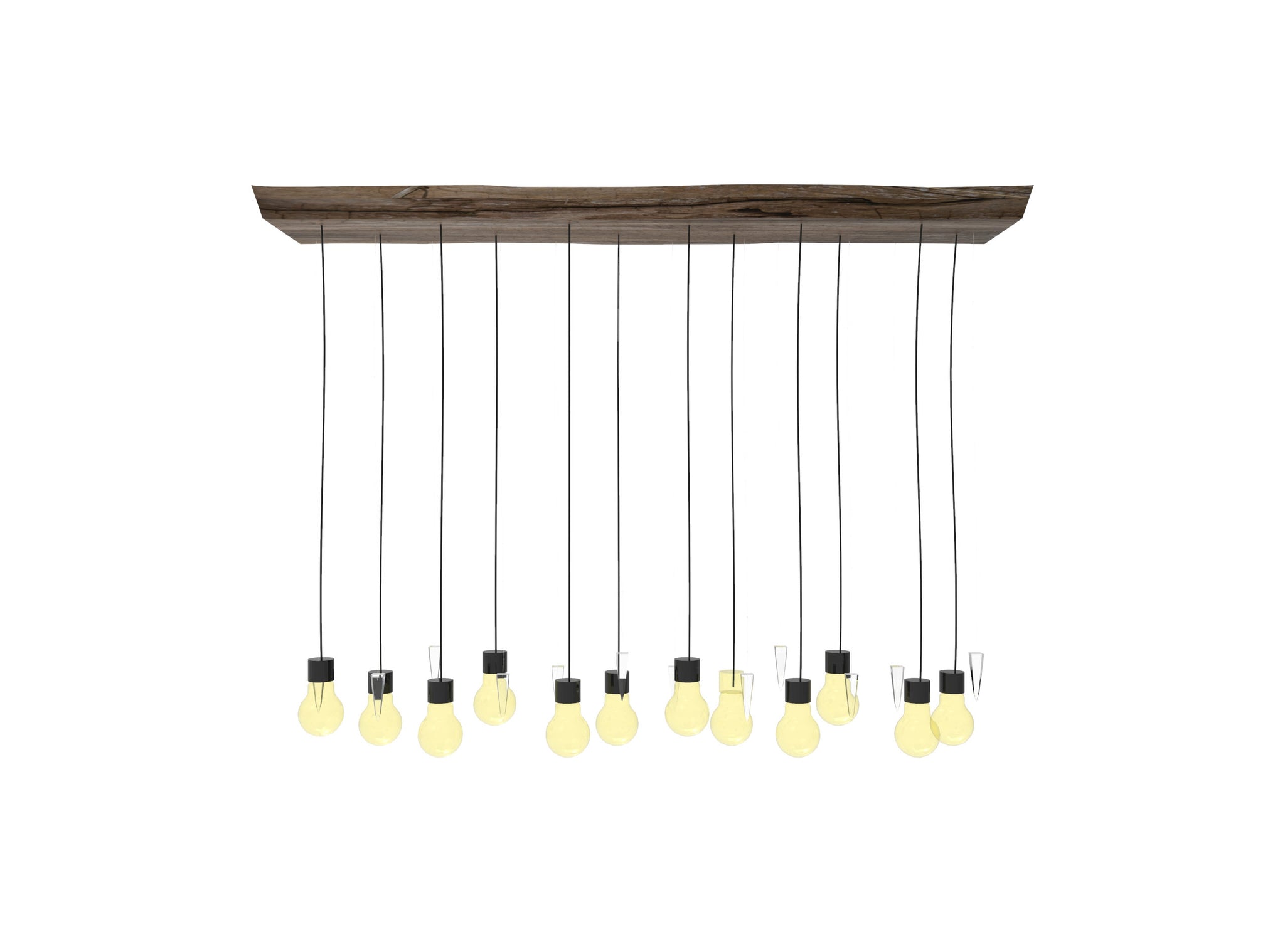 If you're looking to give your space more natural and rustic look, this unique live edge walnut slab fixture is perfect for your office, kitchen, bedroom, or dining area. This one-of-a-kind multi-pendant chandelier has a base made of reclaimed wood (it will vary from piece to piece), steel black chain, and black cord twisted with sockets. The height of each bulb can be adjusted by wrapping or unwrapping the wire around the wood. This custom and handmade chandelier is sure to be the perfect finishing touch you’ve been looking for.